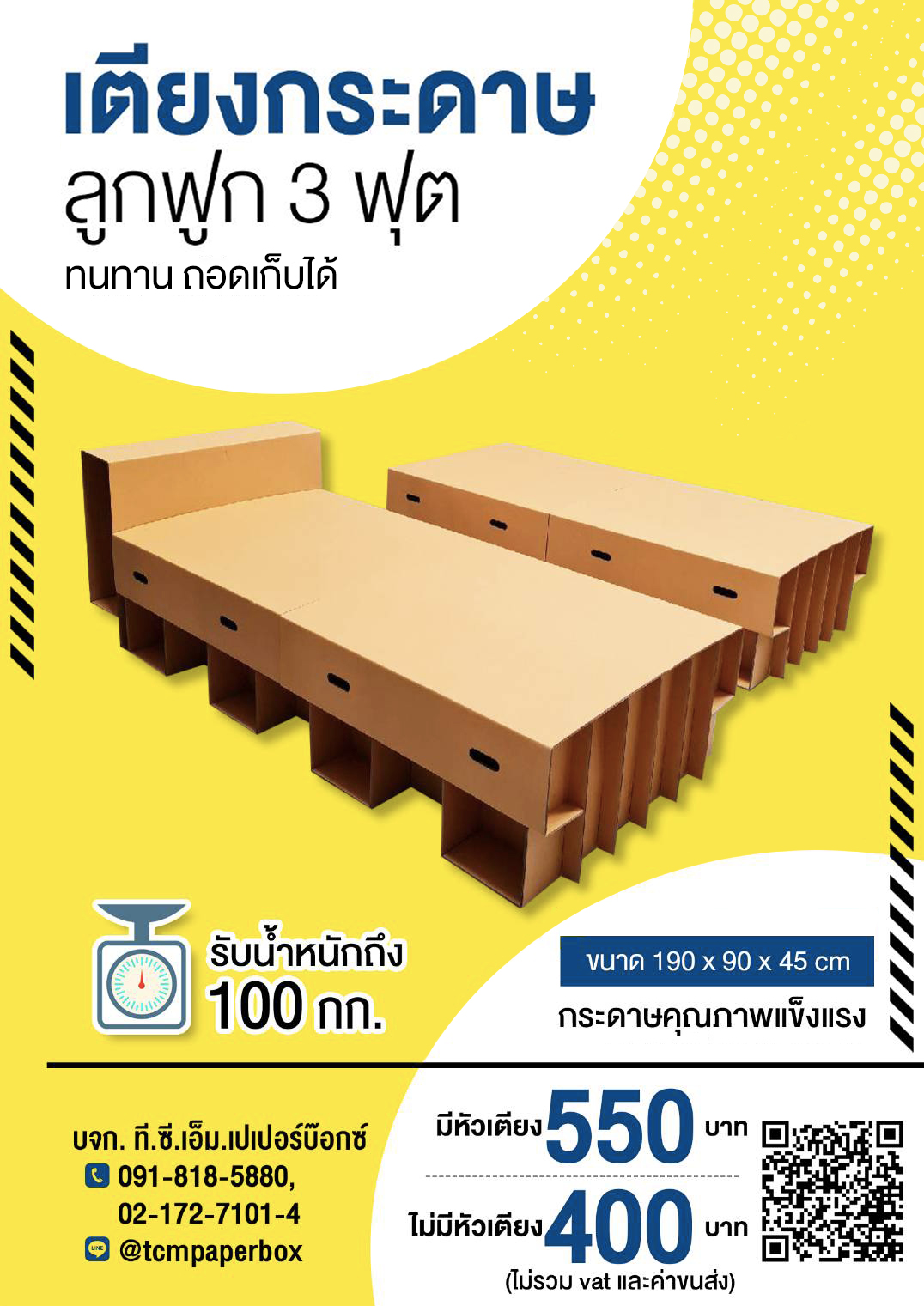 เตียงกระดาษ ลูกฟูก ขนาด 3 ฟุต สำหรับโรงพยาบาลสนาม และศูนย์พักคอย เตียงกล่องกระดาษ เตียงสนาม สนใจติดต่อ Line @tcmpaperbox