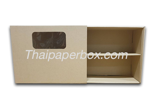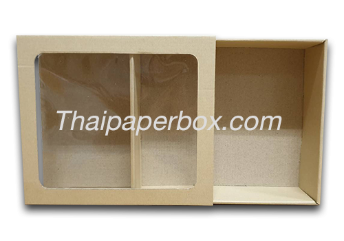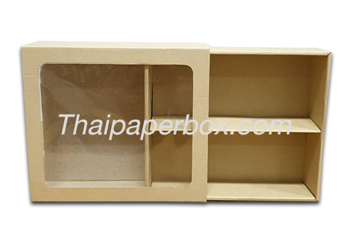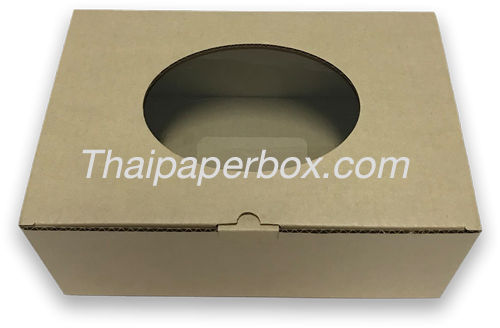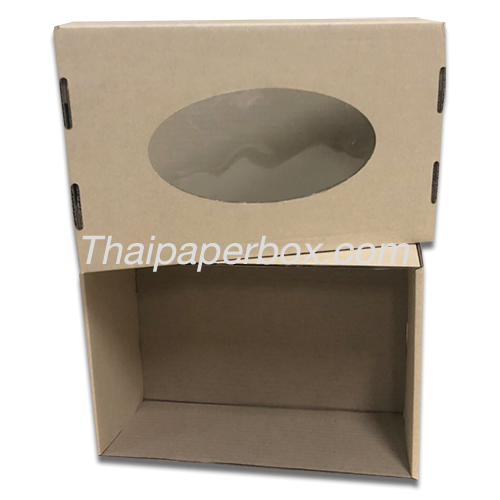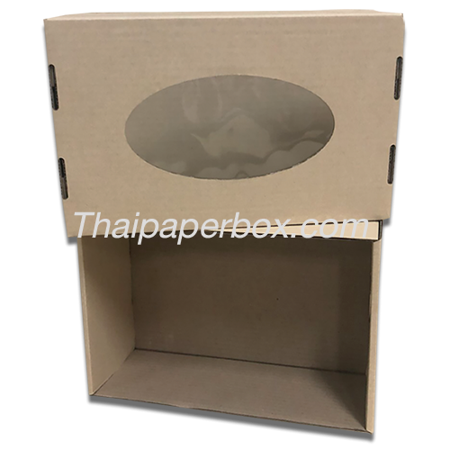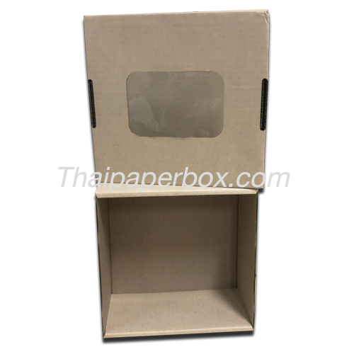 กล่องใส่ของ พร้อมหน้าต่างโชว์สินค้า ขึ้นรูปกล่องโดยไม่ต้องใช้เทปกาว เกรดกระดาษ KI ลอน E ราคา 18.50 บาท/กล่อง (บรรจุ 10 กล่อง/เเพ็ค ราคา 185 บาท )
